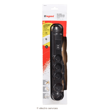 Rallonge 4 prises de courant + 2 chargeurs USB Legrand