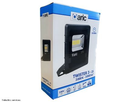 TWISTER 3 - Proj. Ext. IP65 IK08, noir, 90 LED integre 25W 3000K 3000lm ARIC