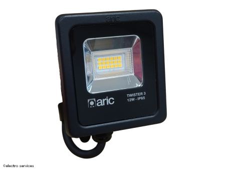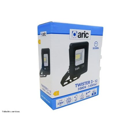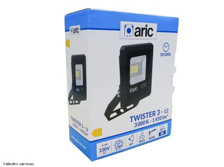 TWISTER 3 - Proj. Ext. IP65 IK08, noir, 90 LED integre 12W 3000K 1450lm ARIC