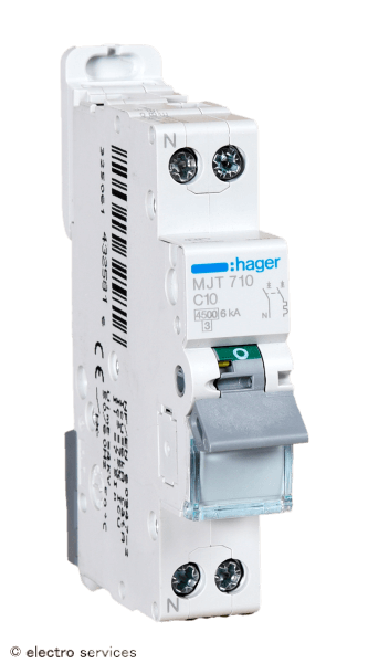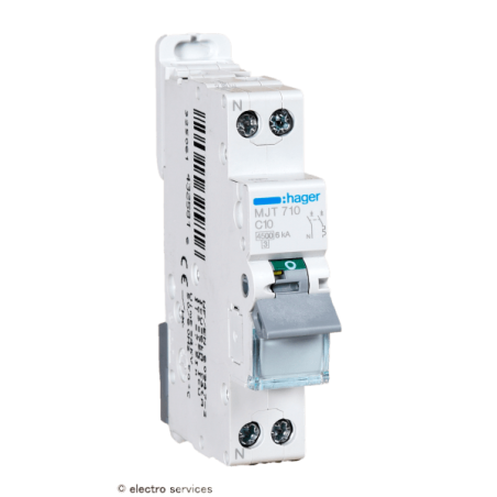 Disjoncteur 1P+N 4.5-6kA courbe C - 10A - 1 module Hager