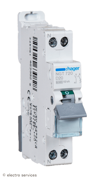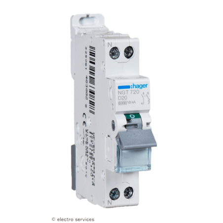 Disjoncteur 1P+N 6-10kA courbe D - 20A - 1 module Hager
