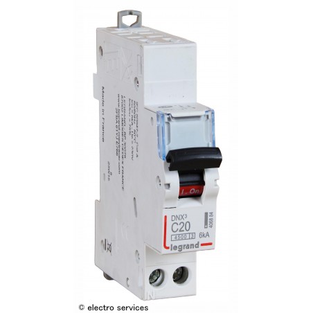 Disjoncteur DNX³4500 6kA - auto - vis - U+N 230V~ 20A courbe C - 1 module Legrand