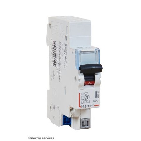 Disjoncteur DNX³4500 6kA - auto - auto - U+N 230V~ 20A courbe D - 1 module Legrand