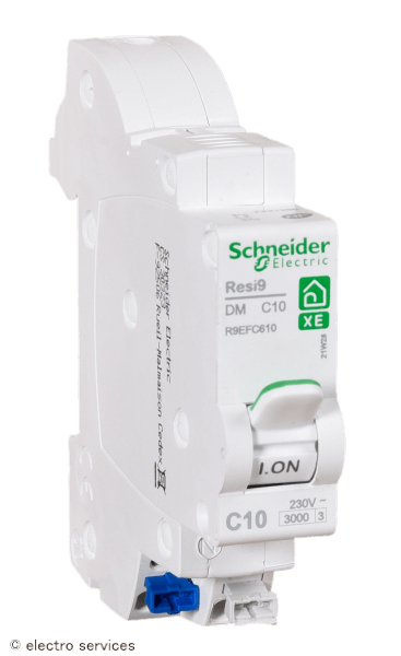 Le disjoncteur modulaire Resi9 XE Schneider Electric 1P+N 10A assure la protection des circuits électriques contre les surcharges et les courts-circuits.