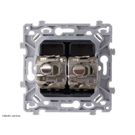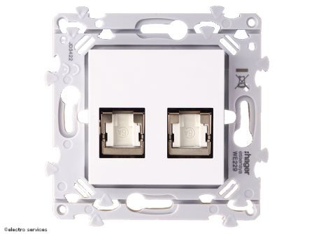Prise RJ45 double Hager Essensya Catégorie 6 STP Grade 3 TV permettant de distribuer les réseaux internet, téléphonie et TV via un câblage unique.
