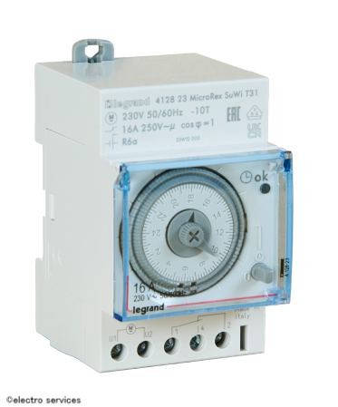 L’inter horaire analogique Legrand permet d’automatiser le fonctionnement d’un circuit électrique sur une base journalière (24h).