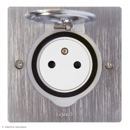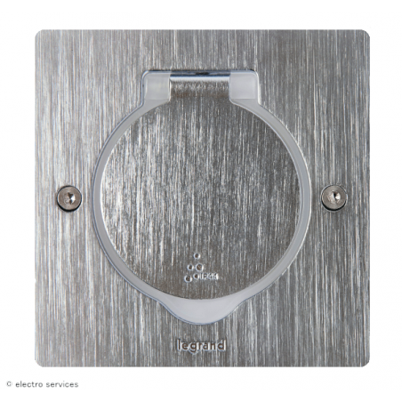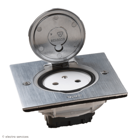 Prise de sol simple 2P+T Surface 16A 250V avec platine carrée - inox brossé
