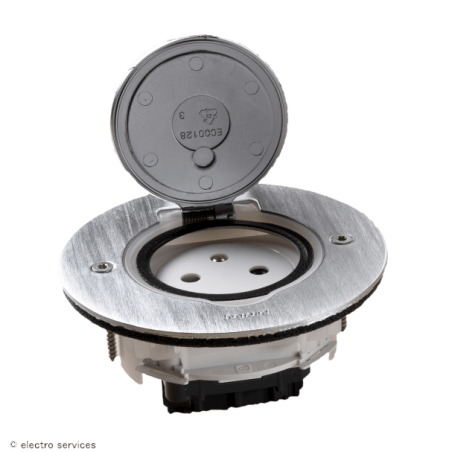 Prise de sol simple 2P+T Surface 16A 250V avec platine ronde - inox brossé