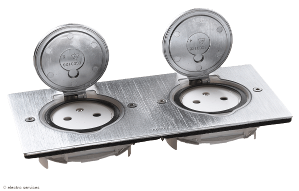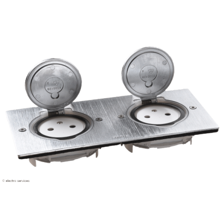Prise de sol double 2P+T Surface 16A 250V avec platine rectangulaire - inox brossé