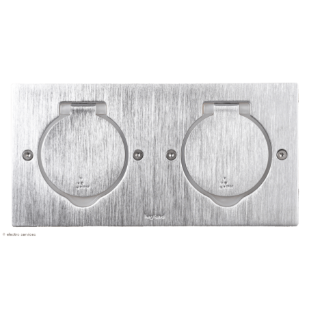 Prise de sol Double Rectangulaire Inox brossé Legrand